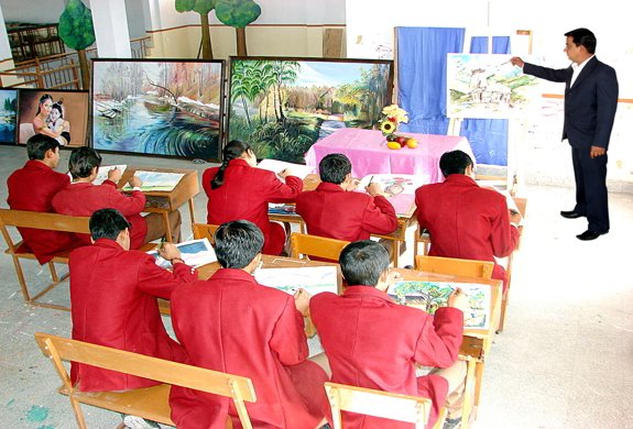 The school Fine Arts lab strives hard to develop a deep sense of beauty among the students and train the children to draw their appreciation and understanding of beauty around them on the canvas. The students begin with sketching simple objects then they learn different tones and how to show shadow and give shades. After getting a good command over the basics, the children enjoy and explore the areas of their interests like emboss painting, collage making, glass painting, cartooning or other forms of art.
