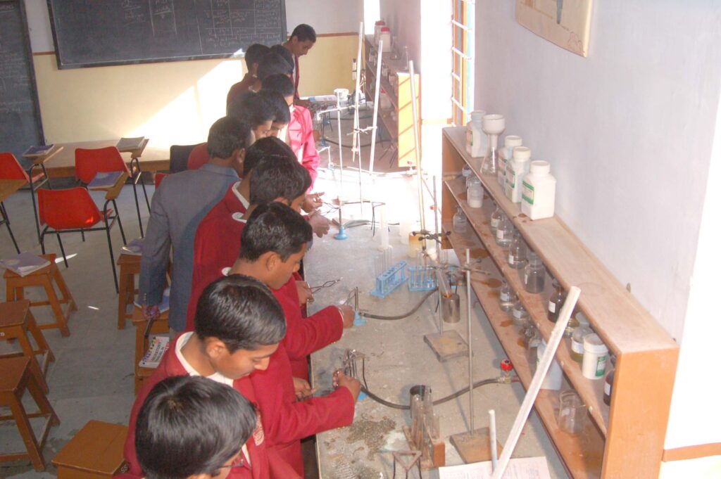 The lab consists of instruments like distillation apparatus, centrifuge, viscosity apparatus, Kipps apparatus, balances etc. Various polythene ware, porcelain ware & glass wares like conical flask, burette, pipette, test tubes, and beakers find a place in the lab. Chemical apparatus like Bunsen burner, burette stand, water bath, crucible tong have been provided for experimental purposes. Rexin coated charts provide information on topics like periodicity of elements, shapes of atomic orbitals, Isomerism, Metallurgy etc.